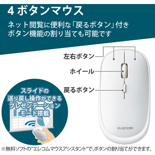 エレコム M-TM15BBWH マウス ワイヤレスマウス 無線 Bluetooth 静音 4ボタン 充電式 ホワイト