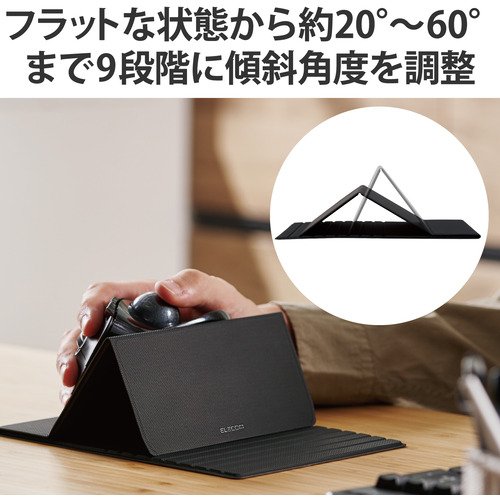 ●傾斜角度はフリップを折ることで9段階(20度〜60度)の調節が可能です。