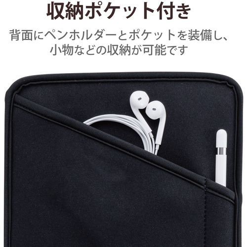 ●本体背面にはペンホルダーとポケットを装備しているので、タッチペンや小物の収納も可能です。