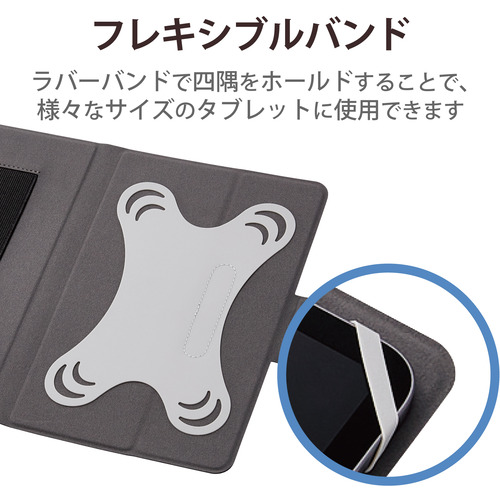 ●シリコン製ラバーバンドでタブレットの四隅をしっかりホールドすることで、7〜8.4インチのタブレットにフレキシブルに対応する汎用ケースです。
