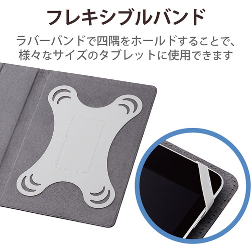 ●シリコン製ラバーバンドでタブレットの四隅をしっかりホールドすることで、8.5〜11.5インチのタブレットにフレキシブルに対応する汎用ケースです。