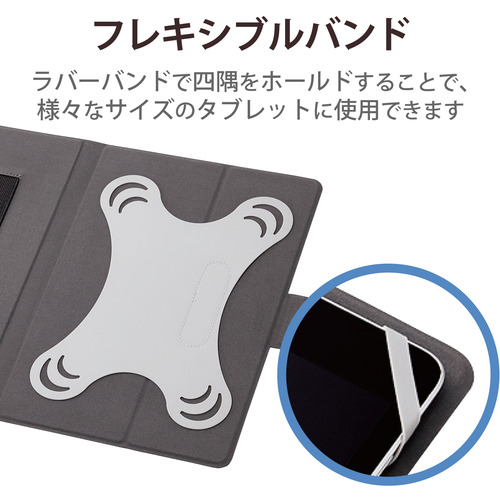 ●シリコン製ラバーバンドでタブレットの四隅をしっかりホールドすることで、8.5〜11.5インチのタブレットにフレキシブルに対応する汎用ケースです。