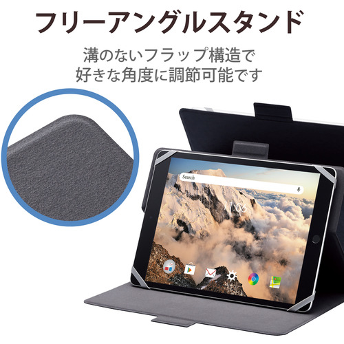 ●8.5〜11.5インチのタブレットに対応し、端末の薄さを損ねない薄型タイプの手帳型の汎用タブレットケースです。