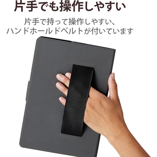 エレコム TB-10UHGFLBK タブレットケース カバー 汎用 8.5〜11.5インチ ソフトレザー 手帳型 フラップ マグネット フリーアングル ハンドベルト 薄型 軽量 小学生 ブラック