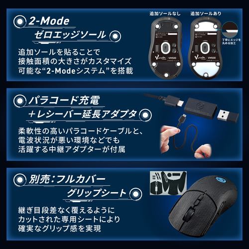 ●最適って、最強。エレコムのハイクラス・ゲーミングデバイス“ELECOM GAMING V custom”シリーズの、右利きに最適化された左右非対称ゲーミングマウス“VM500”。