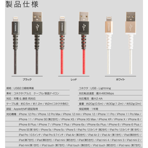 ●Apple社の基準をクリアした高品質ケーブルを使用し、Apple社の認定工場を製造しています。