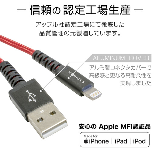京ハヤ VPBD050LRD 強靭ライトニングケーブル50 KYOHAYA 50cm レッド