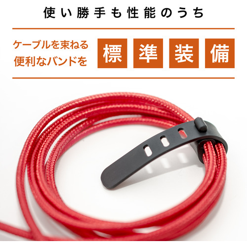 使用しない際にまとめておくのに便利な、伸び縮みするシリコン素材のケーブルタイを標準装備しています。