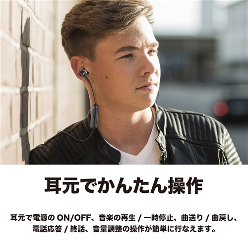 耳元で電源のON/OFF、音楽の再生/一時停止、曲送り/曲戻し、電話応答/終話、音量調整の操作が簡単に行なえます。