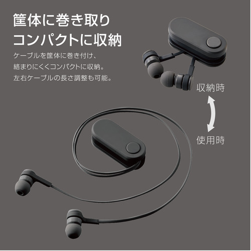 エレコム LBT-HPC17BK ワイヤレスイヤホン Bluetooth bund 巻き取りタイプ クリップ付き スモークブラック