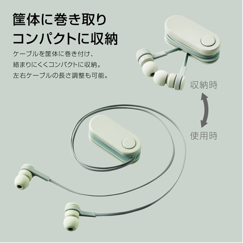 エレコム LBT-HPC17GN ワイヤレスイヤホン Bluetooth bund 巻き取りタイプ クリップ付き オリーブカーキ