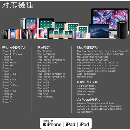 Appleによる認可を証明するチップを使用することで、あらゆるライトニングコネクタの機器に対応していることが保証されています。
