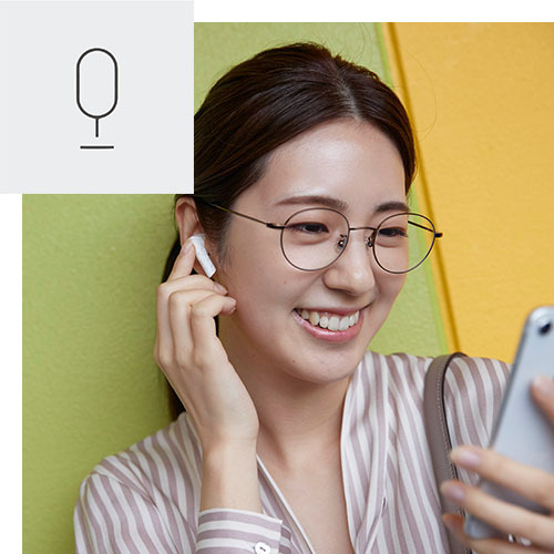 右側または左側だけでの音楽再生やハンズフリー通話にも対応しており、周りの音を聞きながら、また片側を充電しながら使用することができます。