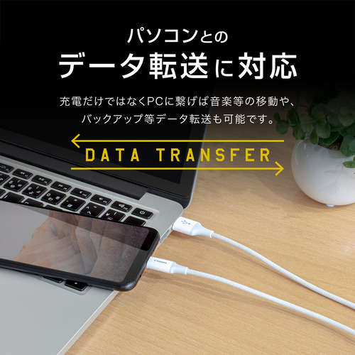 充電はもちろんデータ転送にも対応した、USB A to USB Type-C ケーブルです。