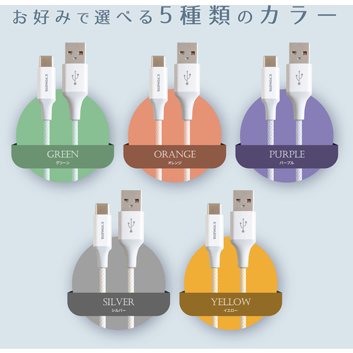 家庭や職場で他のケーブルと一緒に使用している時も、一目で見分けられるので便利な、USB A to USB Type-C ケーブルです。