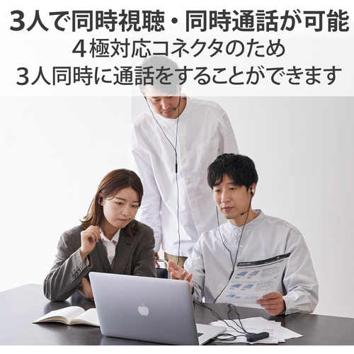 ●4極対応コネクタのため、3人同時に通話をすることができます。