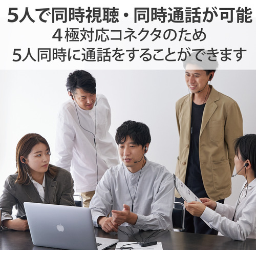 ●4極対応コネクタのため、5人同時に通話をすることができます。
