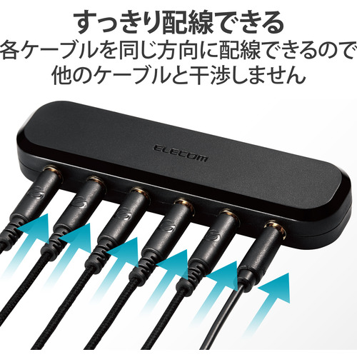 ●各ケーブルを同じ方向に配線できるデザインなので、すっきり配線できます。