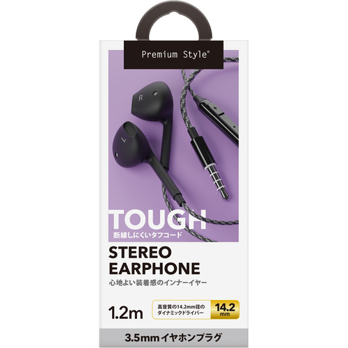 PGA PG-SETC1BK1 3.5mmイヤホンプラグ ステレオイヤホン タフケーブル/インナーイヤータイプ Premium Style ブラックPGSETC1BK1