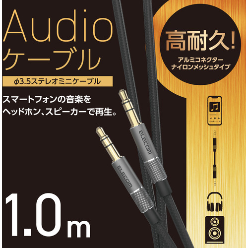 ●音楽プレーヤーやスマートフォンの音楽をヘッドホンやスピーカーで再生することが可能なφ3.5mmステレオミニケーブルです。断線に強い高耐久のアルミコネクター・ナイロン編組ケーブルを採用しており、4万回の屈曲試験(当社基準)に合格しています。