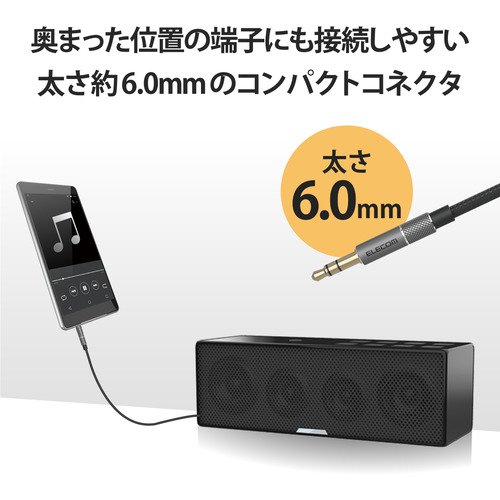 ●奥まった位置に端子がある機器にも接続しやすい、太さ約6.0mmのコンパクトコネクターを採用しています。