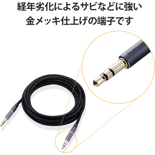 エレコム AX-35MA20BK ステレオミニプラグ AUX オーディオケーブル 3.5mm 2m 高耐久 ブラック AX35MA20BK