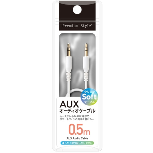 PGA PG-AUXY05M12WH 3.5mmステレオミニプラグ AUXオーディオケーブル やわらか 0.5m Premium Style ホワイト PGAUXY05M12WH