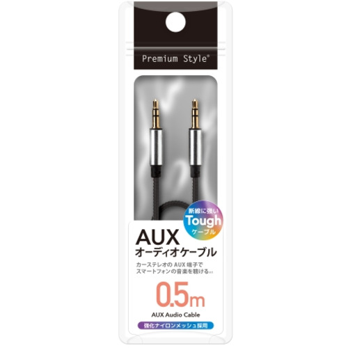 PGA PG-AUX05M11BK 3.5mmステレオミニプラグ AUXオーディオケーブル タフ 0.5m Premium Style ブラック PGAUX05M11BK