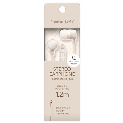 PGA PG-SECE1BE2 3.5mmステレオプラグ ステレオイヤホン カナルタイプ Premium Style コード長1.2m ベージュ PGSECE1BE2