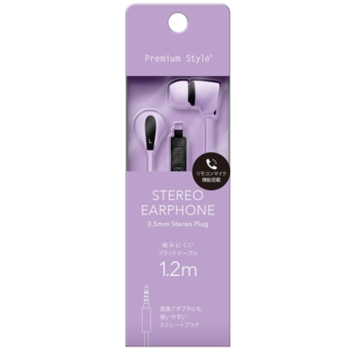 PGA PG-SECE2PP3 3.5mmステレオプラグ ステレオイヤホン カナルタイプ Premium Style コード長1.2m パープル PGSECE2PP3