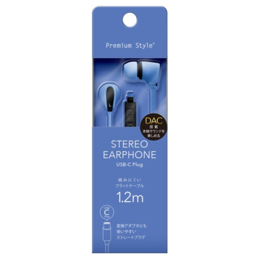 PGA PG-SECE4BL2 USB Type-Cコネクタ ステレオイヤホン カナルタイプ Premium Style コード長1.2m ブルー PGSECE4BL2
