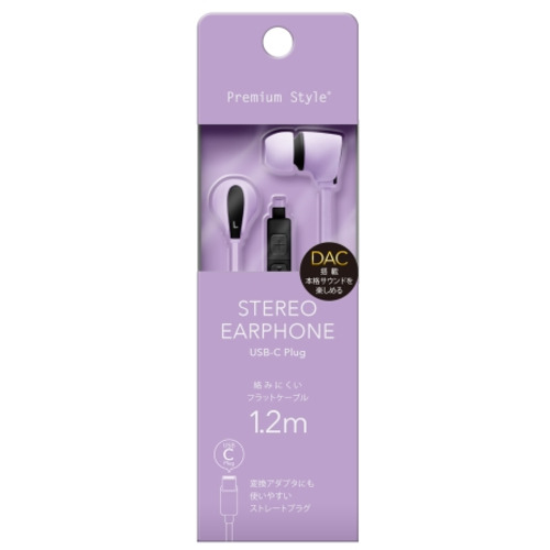 PGA PG-SECE4PP3 USB Type-Cコネクタ ステレオイヤホン カナルタイプ Premium Style コード長1.2m パープル PGSECE4PP3