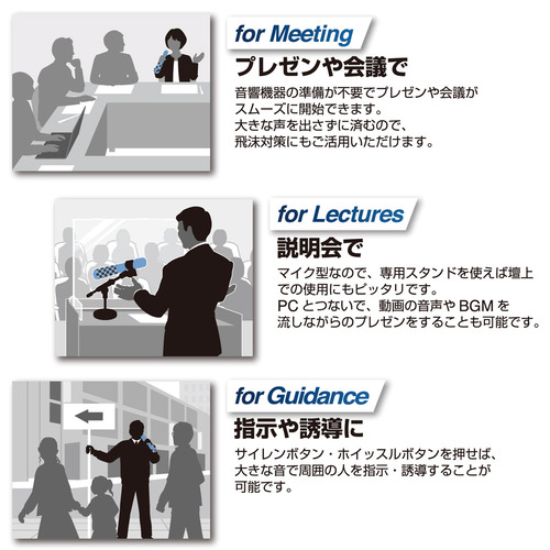 側面2か所、底面1か所のトリプルスピーカ―搭載で、大声を出さずにしっかりと声を届けることができます。