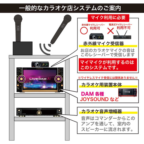 カラオケルーム内に入って、マイマイク本体の電源スイッチをONにするだけで直ぐに使用可能。