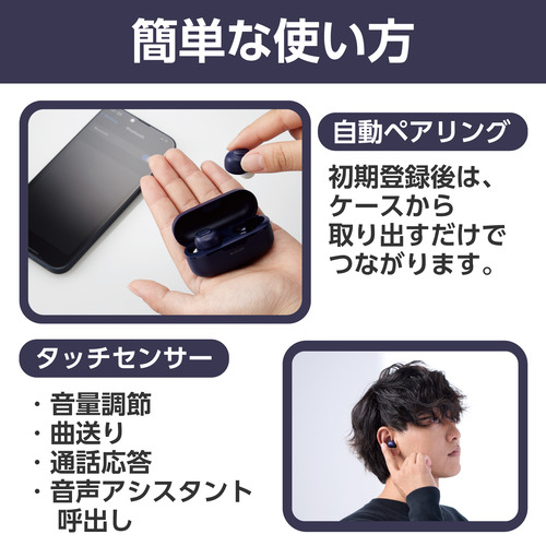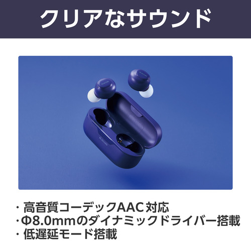 【推奨品】エレコム LBT-TWS16NV 完全ワイヤレスBluetoothヘッドホン ネイビー