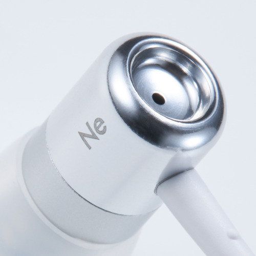 筐体素材には、前後で質感の異なるアルマイト処理を施した高剛性のアルミニウムを採用。小型のドライバーユニットを内蔵するミニマルな円筒形の筐体には、音質のかなめとなる「Air?ow Port」の存在を強調する、すり鉢状の造形的なアクセントが施されています。