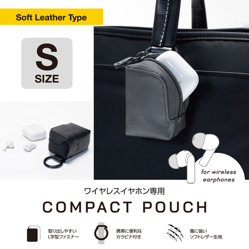 ●傷に強いソフトレザーを使用!ワイヤレスイヤホンの携帯に便利なコンパクトポーチです。持ち運び時にイヤホンが飛び出し紛失することを防ぎます。L字ファスナーになっており、口が大きく開くためイヤホンをサッと取り出すことが可能。内部には起毛生地を採用し、イヤホンを衝撃から優しく守ります。