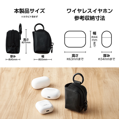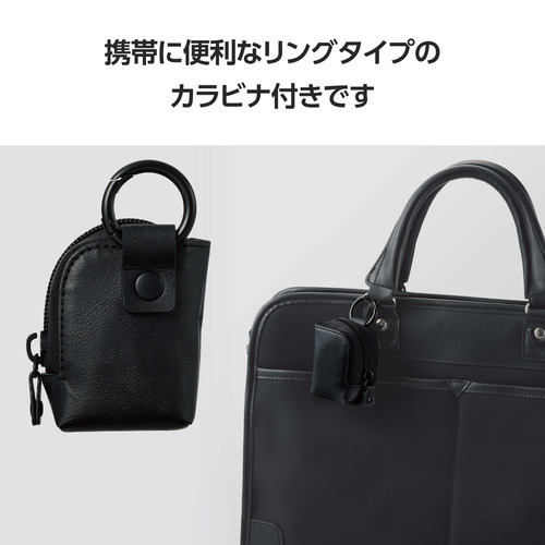 エレコム TWS-EP23LSBK TWS用汎用イヤホンケース Sサイズ カラビナ ソフトレザータイプ Airpods/Pro LBT-TWS13 他対応 ブラック