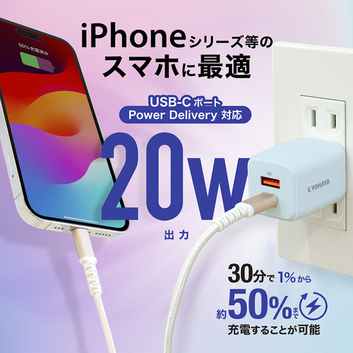 iPhoneシリーズを高速充電するのに最適な最大20W出力で、USB CポートとUSB Aポートの2ポート搭載の急速USB充電器です。
