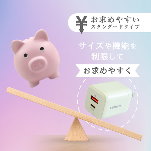サイズや機能を制限することでお求めやすくしたUSB充電器です。