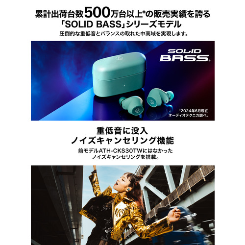 【推奨品】オーディオテクニカ ATH-CKS30TW+ TBK ワイヤレスイヤホン 左右分離 Bluetooth ノイズキャンセリング トランスルーセントブラック