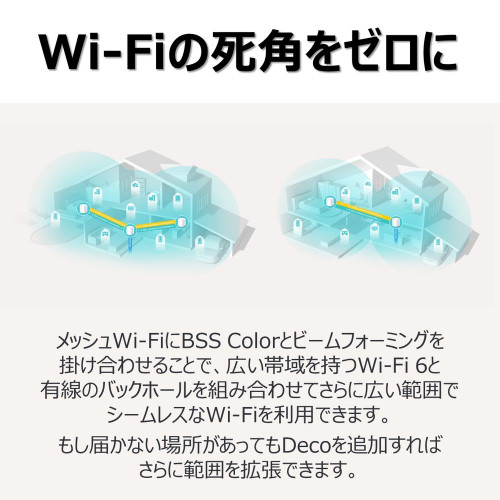 ・死角をゼロに、すべての部屋に: Wi-Fi 6の特徴 ノイズへの強さと、メッシュWi-Fiを組み合わせることで更に広範囲に。