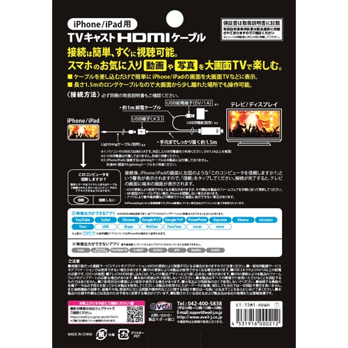 アベル ET-15M1-HDWH TVキャストHDMIケーブル ホワイト