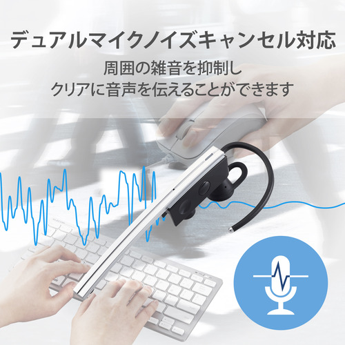 ●デュアルマイクノイズキャンセル機能を搭載し、周囲の雑音を抑制し、クリアに音声を伝えることができるBluetooth(R)ハンズフリーヘッドセットです。