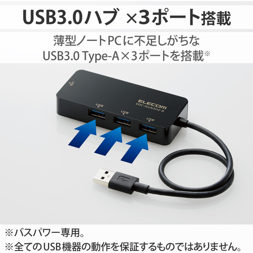●USBハブ部は、高速転送可能なUSB3.0ポート(USB-A)を3ポート搭載しています。