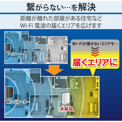●Wi-Fiルーターとの距離が離れた部屋がある住宅や、鉄筋構造や断熱材、床暖房などWi-Fiの電波を通しにくい住宅にお住まいで、「Wi-Fiの電波が届かない、届きにくい」とお困りのお客様に最適です。