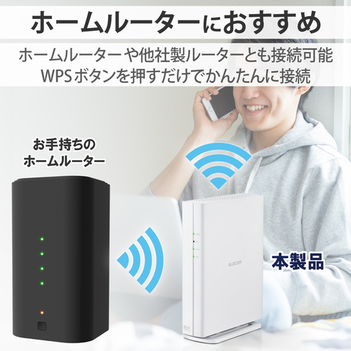 ●本製品は固定回線を利用した通常のWi-Fiルーターはもちろん、Wi-Fiが搭載された各キャリアの5Gホームルーター含め、他社製ルーターとも接続可能で、Wi-Fiエリアを広げることができます。