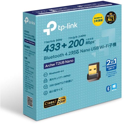 ティーピーリンクジャパン 2in1無線LAN Blutetooth 4.2 子機 ナノサイズ USB 2.0 ARCHER T2UB NANO