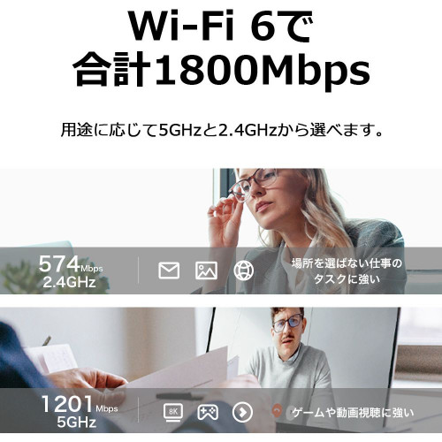混雑した無線環境でもWi-Fi6で快適。ハイパワー デュアルバンド無線LAN子機