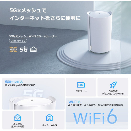 ティーピーリンクジャパン SIM フリー 5G対応Wi-Fi6メッシュルーター 2402+574Mbps 3年保証 DECO X50-5G